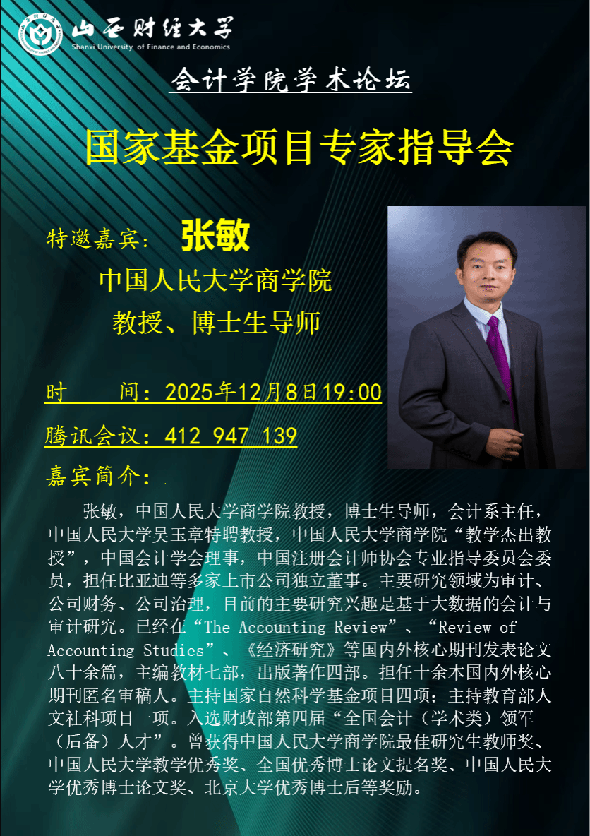 学术论坛第207期如期举行。本期论坛特邀中国人民大学商学院张敏教授担任主讲嘉宾,为学院师生带来一场题为“国家项目申请体会”的学术报告,并进行国家级项目申报专题辅导。论坛由肛交